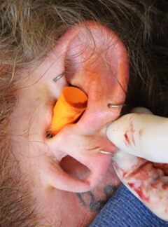 Otoplasty is an outpatient procedure in which the patient is provided a local anesthesia and a mild sedative. The surgeon makes an incision across the back crease of the ear and either removes or sculpts (refolds) cartilage, depending on the needs of the patient. Once the alterations are complete, the surgeon uses sutures to maintain the new shape and positioning of the patient’s ear.
